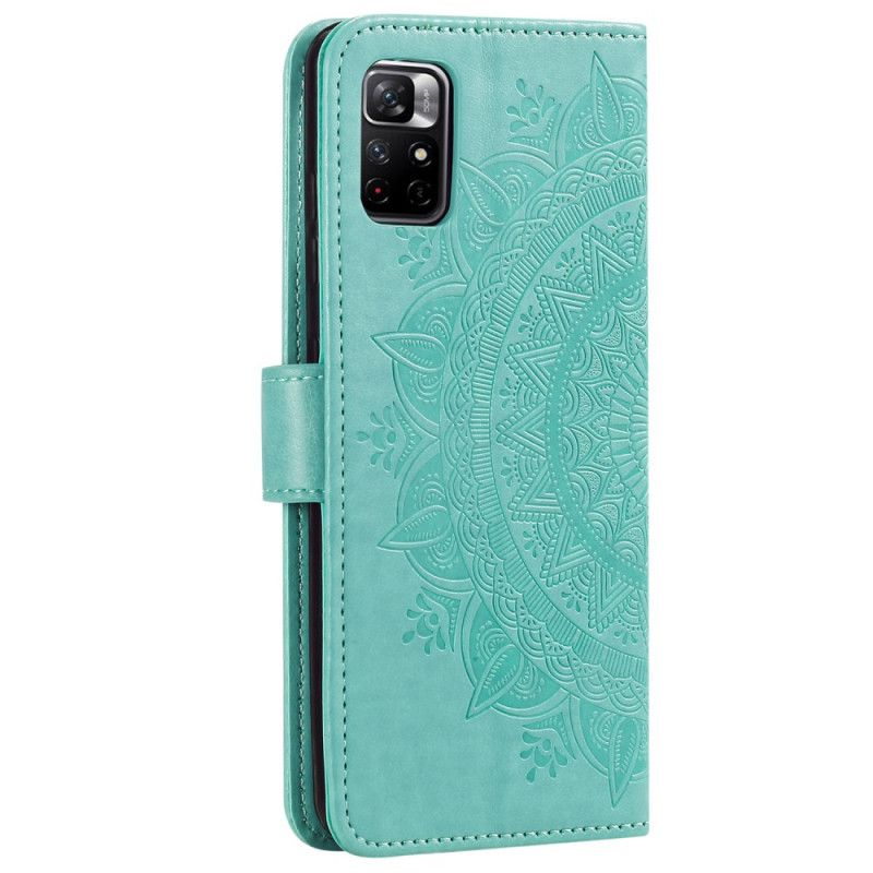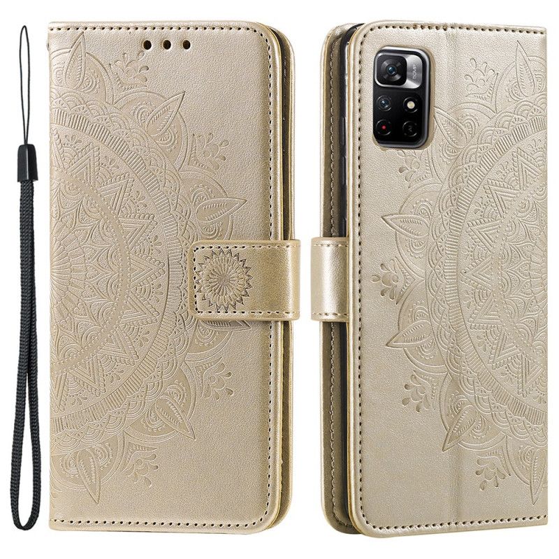 Wspaniały pokrowiec Mandala Sun do Xiaomi Redmi Note 11 / Poco M4 Pro 5G, który pełni również funkcję portfela i podstawki.