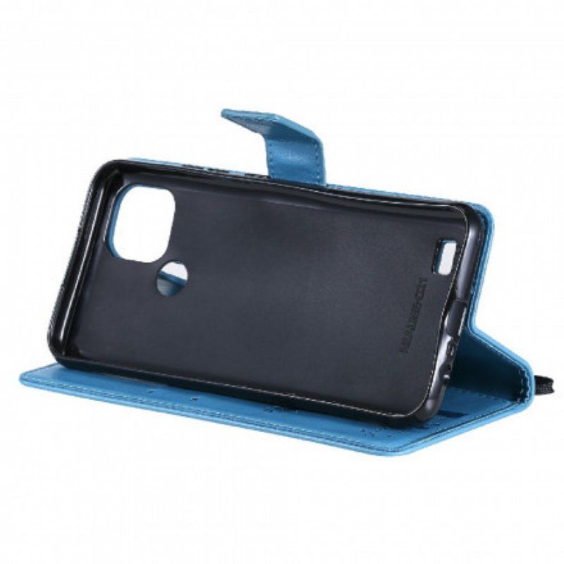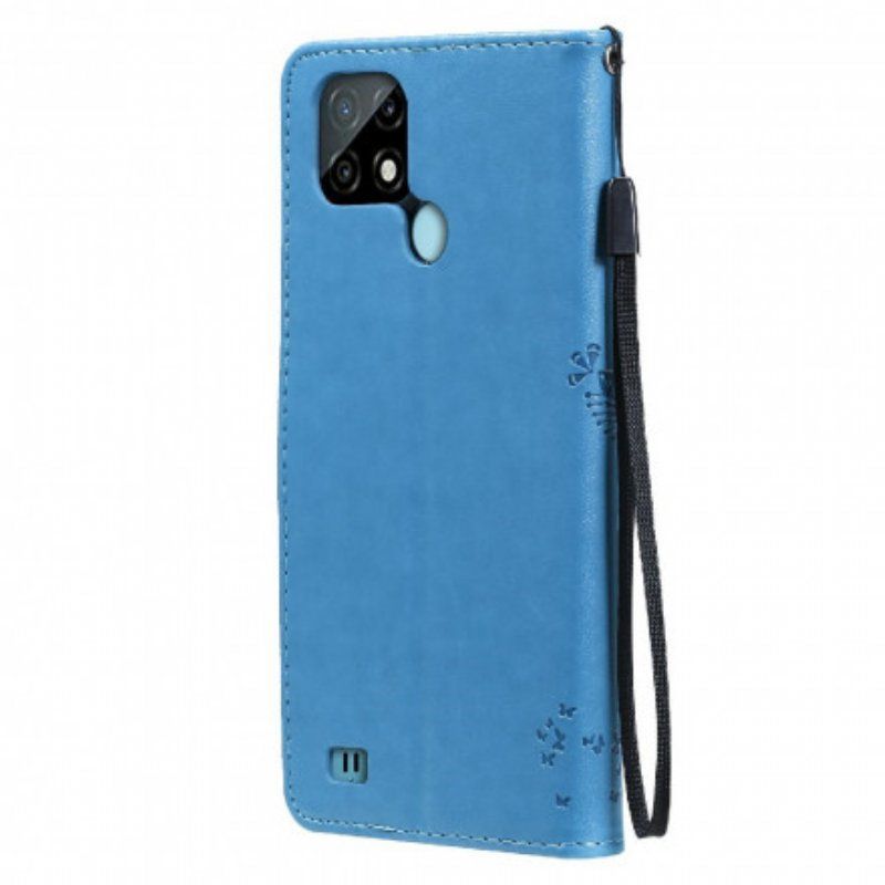 Etui Z Efektem Skóry Cat And Butterflies Z Magnetyczną Klapką Chroni Realme C21.