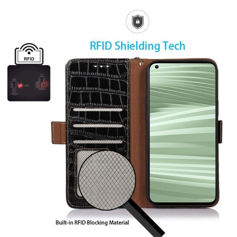 Chroń Swój Realme Gt2 Pro I Swoje Karty Za Pomocą Tego Etui Z Prawdziwej Skóry Krokodyla Z Funkcją Rfid.