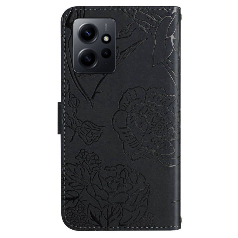 Pokrowiec Ze Sztucznej Skóry Butterflies Jest Wyposażony W Regulowany Pasek Do Noszenia Xiaomi Redmi Note 12 4G.