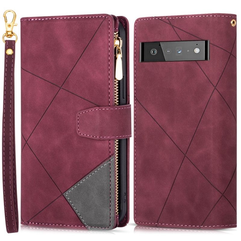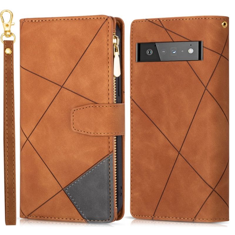 Skórzany Futerał Google Pixel 6 Etui Na Telefon Dwukolorowa Graficzna Kieszeń Zapinana Na Zamek