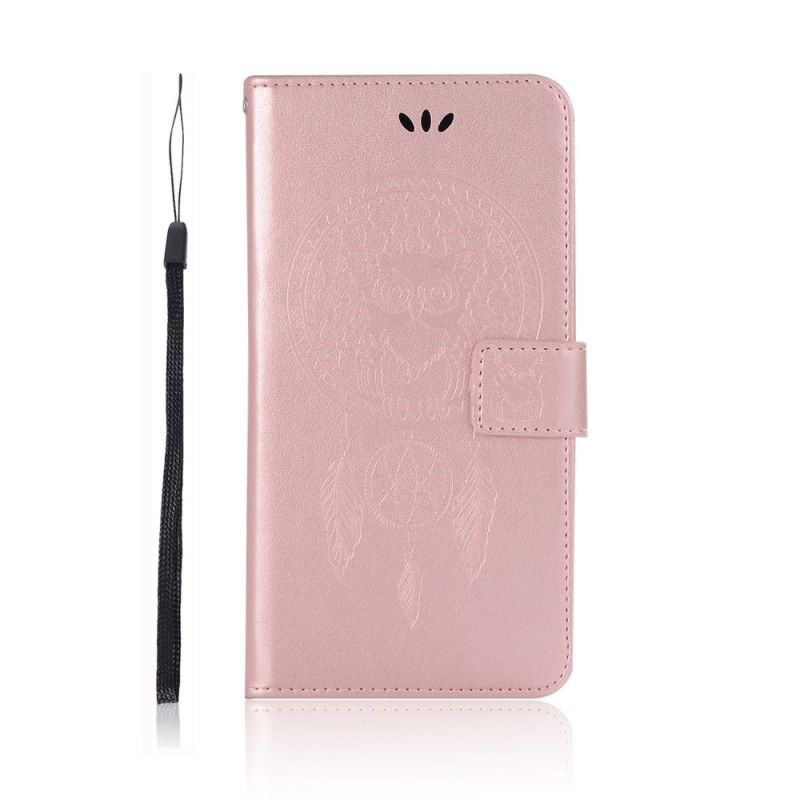 Skórzany Futerał Honor 9X Złoty Czarny Etui na Telefon Łapacz Snów Z Sową Skórą