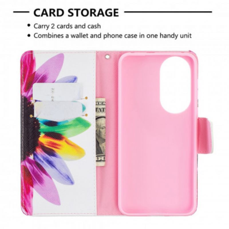 Skórzany Futerał Huawei P50 Etui Na Telefon Kwiat Akwarela