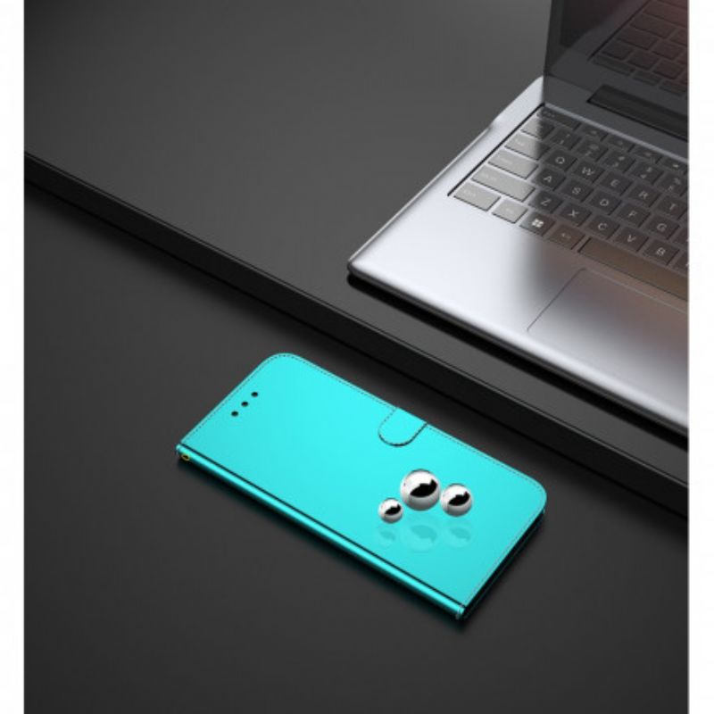 Twój Huawei P50 jest doskonale zabezpieczony dzięki temu etui z imitacji skóry z osłoną lusterka, która jest wyposażona w bardzo praktyczny pasek.