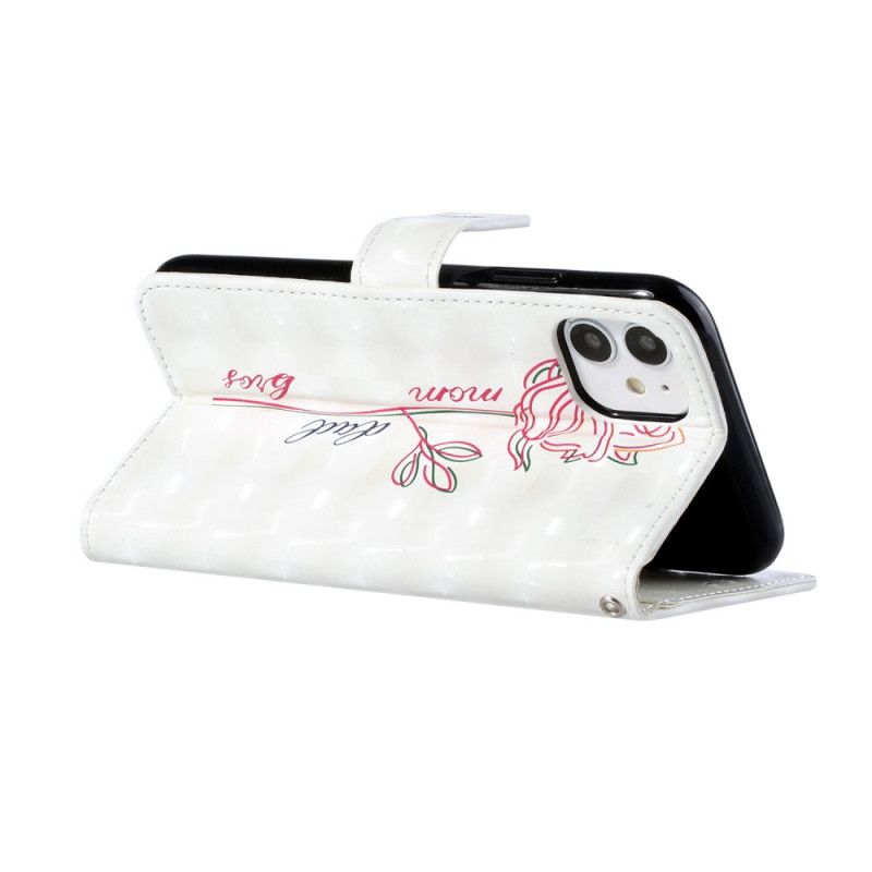 Skórzany Futerał iPhone 11 Etui na Telefon Regulowany Pasek Z Kwiatkiem