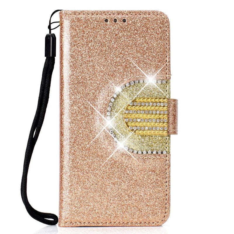 Skórzany Futerał iPhone 11 Jasnofioletowy Złoty Etui na Telefon Cekiny I Diamenty