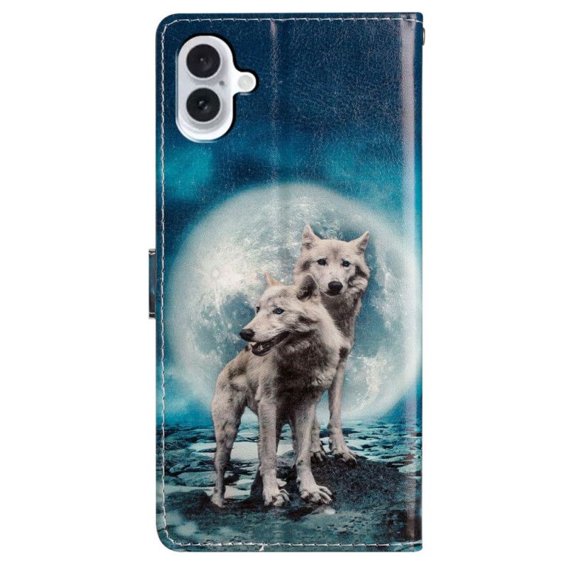 Skórzany Futerał iPhone 16 Plus Etui Na Telefon Para Wilków Z Paskami