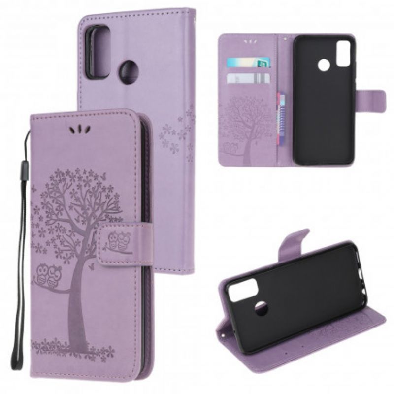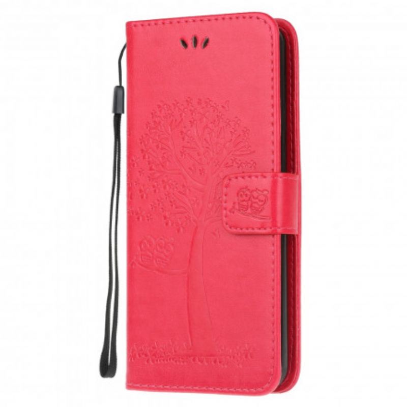 Skórzany Futerał Moto G50 Etui Na Telefon Drzewo I Sowy Pasiaste