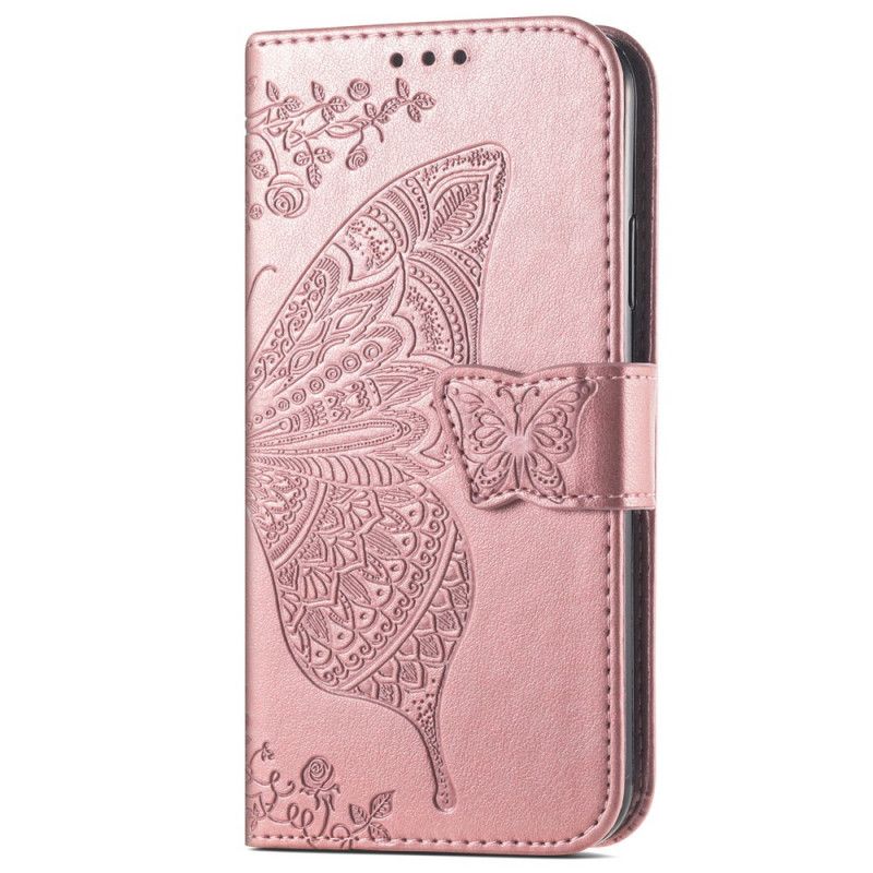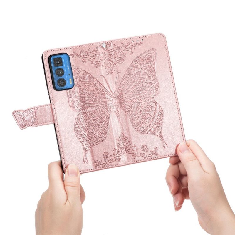 Pokrowiec w kształcie pół motyla z klapką magnetyczną chroni telefon Motorola Edge 20 Pro.