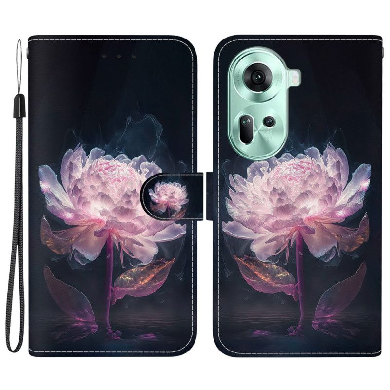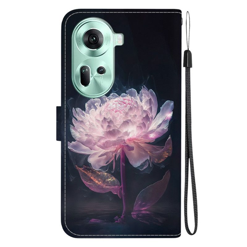 Skórzany Futerał Oppo Reno 11 5g Etui Na Telefon Fioletowa Piwonia Z Paskiem