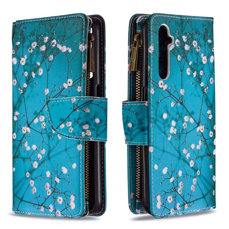 Skórzany Futerał Realme 6 Jasnoniebieski Biały Etui na Telefon Zapinana Na Zamek Kieszeń Na Drzewo