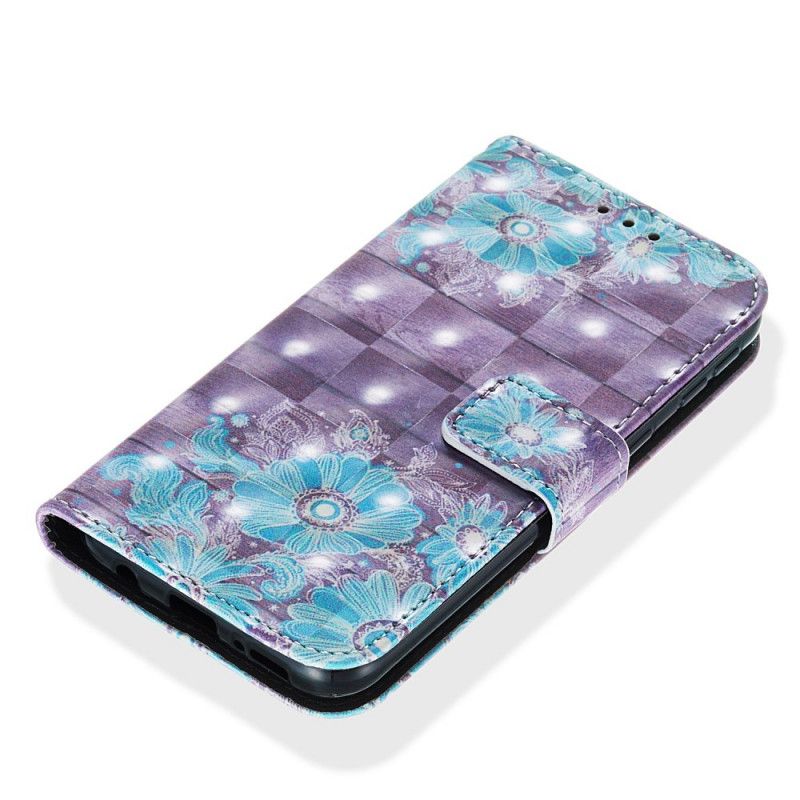 Skórzany Futerał Samsung Galaxy A20e Etui na Telefon Niebieskie Kwiaty