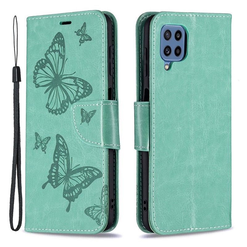 Wspaniała obudowa do Samsung Galaxy M32. z wysokiej jakości imitacji skóry, ozdobiona wspaniałymi motylami w locie, z bardzo przydatnym paskiem do transportu.