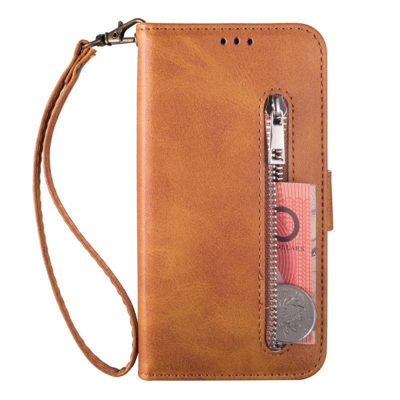 Skórzany Futerał Samsung Galaxy S10 Lite Brązowy Czarny Etui na Telefon Portmonetka Na Monety Z Paskiem