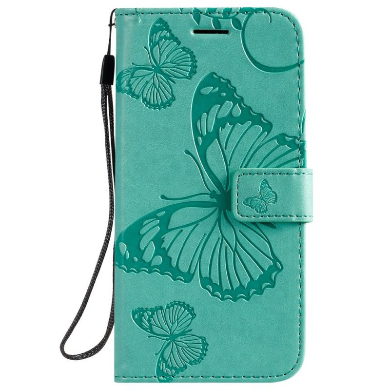 Skórzany Futerał Samsung Galaxy S20 Jasnofioletowy Cyjan Etui na Telefon Gigantyczne Motyle Stringi