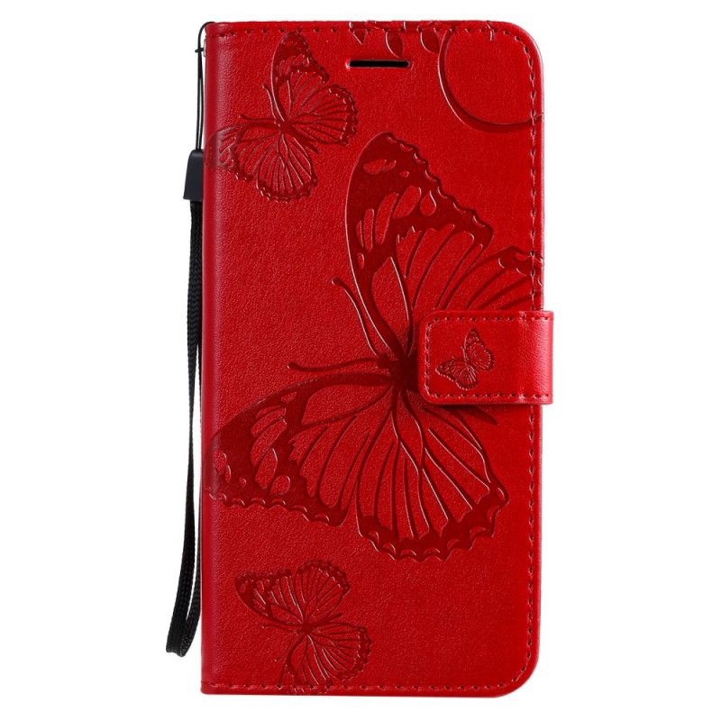 Skórzany Futerał Samsung Galaxy S20 Plus / S20 Plus 5G Czerwony Szary Etui na Telefon Gigantyczne Motyle Stringi