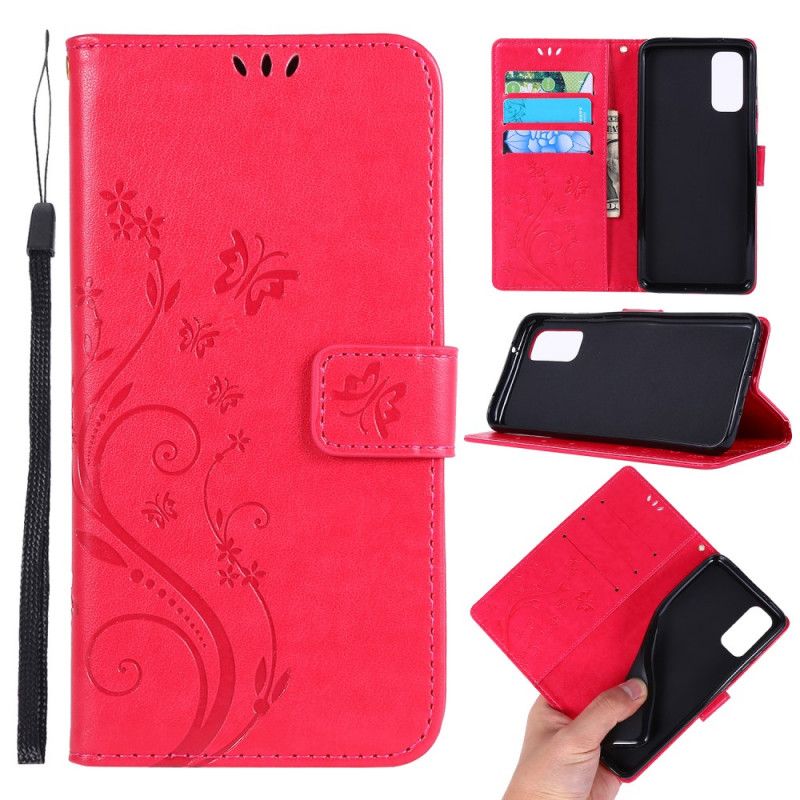 Etui w motyle i kwiaty z klapką magnetyczną zapewni ochronę telefonu Samsung Galaxy S20.