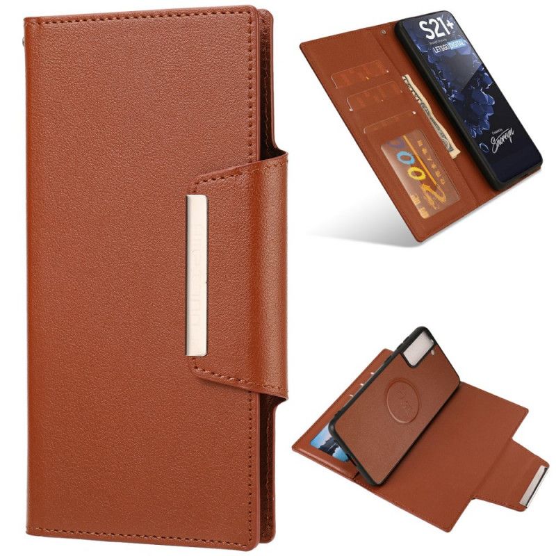 Etui z imitacji skóry z odczepianą powłoką i srebrnym zapięciem jest idealne do ochrony telefonu Samsung Galaxy S21 5G.