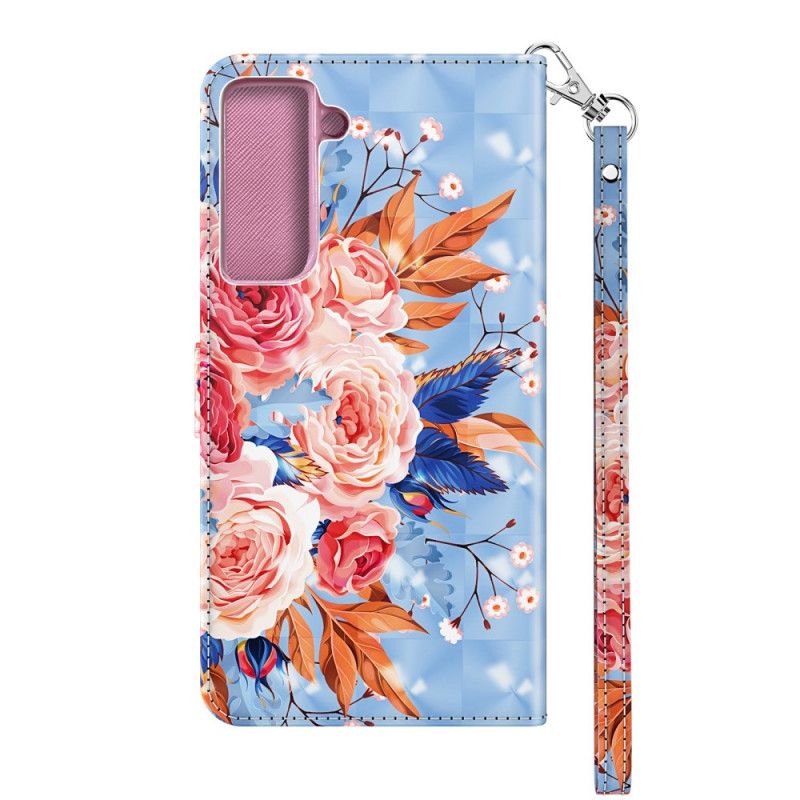 Skórzany Futerał Samsung Galaxy S21 Plus 5G Granatowy Czerwony Etui na Telefon Romantyczny Punkt Świetlny Ze Stringami