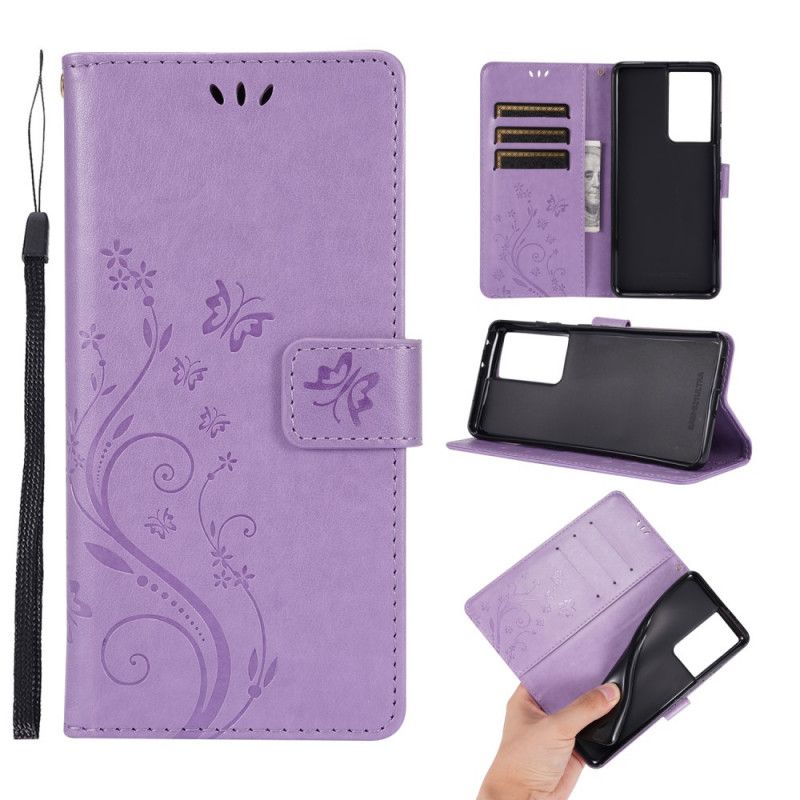 Motyl i kwiaty w osłonie przeciwwiatrowej z klapką magnetyczną ochronią Twój telefon Twój Samsung Galaxy S21 Ultra 5G.