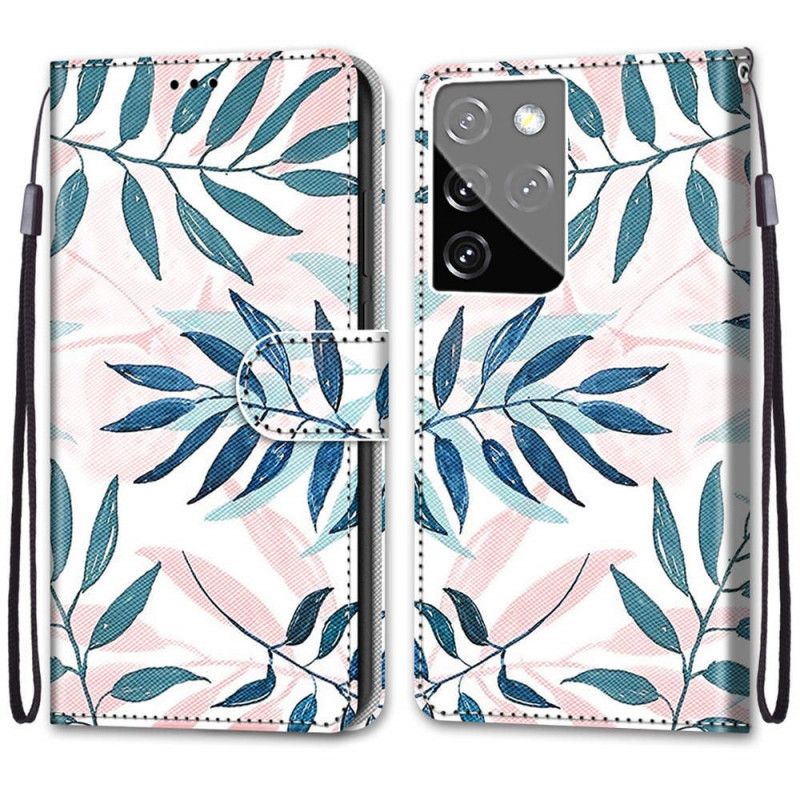 Skórzany Futerał Samsung Galaxy S21 Ultra 5G Zielony Purpurowy Etui na Telefon Kolorowe Liście