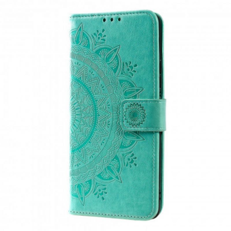 Wspaniały pokrowiec na Xiaomi 11T / 11T Pro w kształcie mandali Sun, który służy również jako portfel i podstawka.
