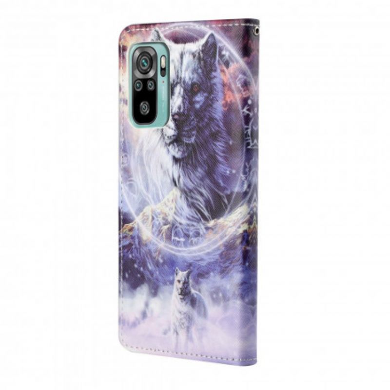 Skórzany Futerał Xiaomi Redmi 10 Etui Na Telefon Wilk Zimą Ze Smyczą