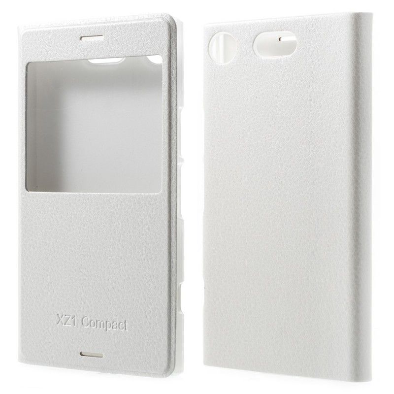 A szorstkie w dotyku etui ze sztucznej skóry S-View, które chroni telefon Sony Xperia XZ1 Compact z charakterem.